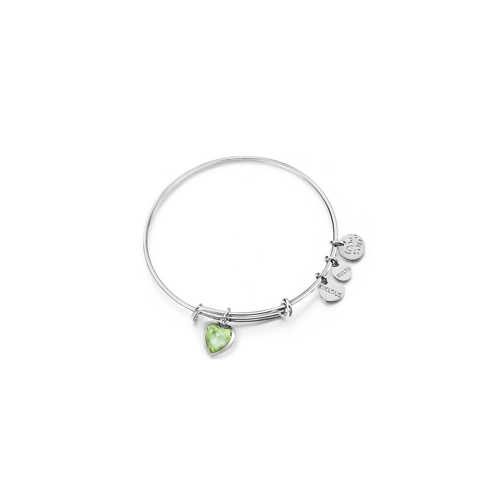 Bracciale in acciaio color argento con ciondolo a forma di cuore in cristallo verde