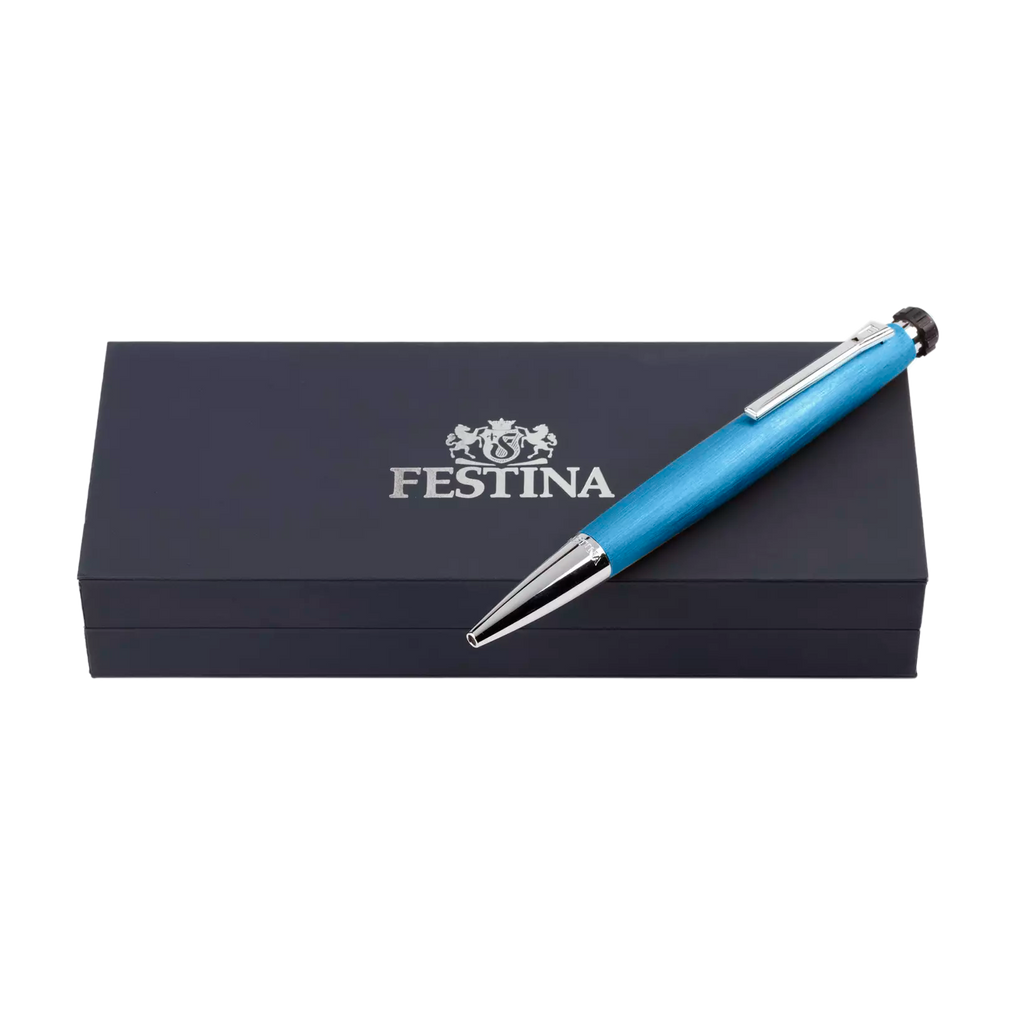 La penna a sfera Festina in colore Azzurro è una vera opera d'arte. La sua texture morbida e i dettagli squisiti ispirati al design unico degli orologi della collezione Chrono Bike la rendono molto più di un semplice strumento di scrittura. Questa penna a sfera presenta un design originale che combina l'universo sportivo con il lusso, rendendola un pezzo unico ed esclusivo.