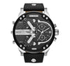 Orologio Diesel da uomo della collezione mr. Daddy 2. 0. Multifunzione Diesel orologi della collezione fall 2014. Il movimento dell'orologio è al quarzo, diametro della cassa 66 x 57 cm, materiale della cassa in acciaio con cinturino in pelle, resistenza all'acqua fino a 3 atm.