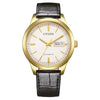 Orologio da uomo del brand Citizen della collezione Meccanico Day Date. Orologio solo tempo automatico con cassa in acciaio placcata oro con fondo serrato a vite e movomento a vista diamero cassa 40mm e vetro minerale. Quadrante chiaro con indici applicat con giorno e data e cinturino in morbida pelle di colore marrone. Movimento meccanico a carica automatica riserva di carica 40 ore, resistenza all'acqua: 10 ATM. Datario: sì.