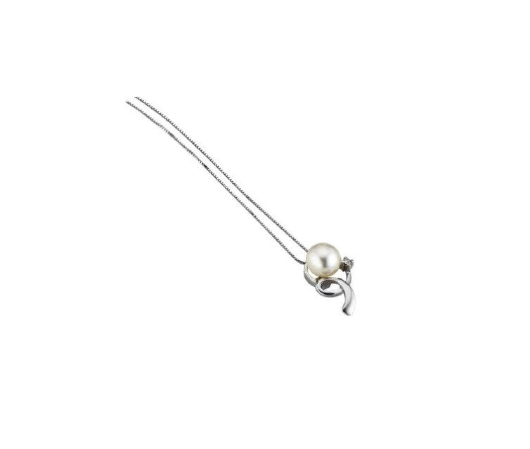 CIONDOLO FANTASIA CON PERLA DA 7 MM E DIAMANTE DI CARATI 0,02